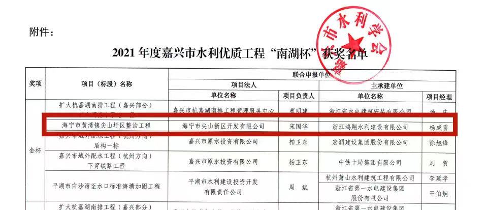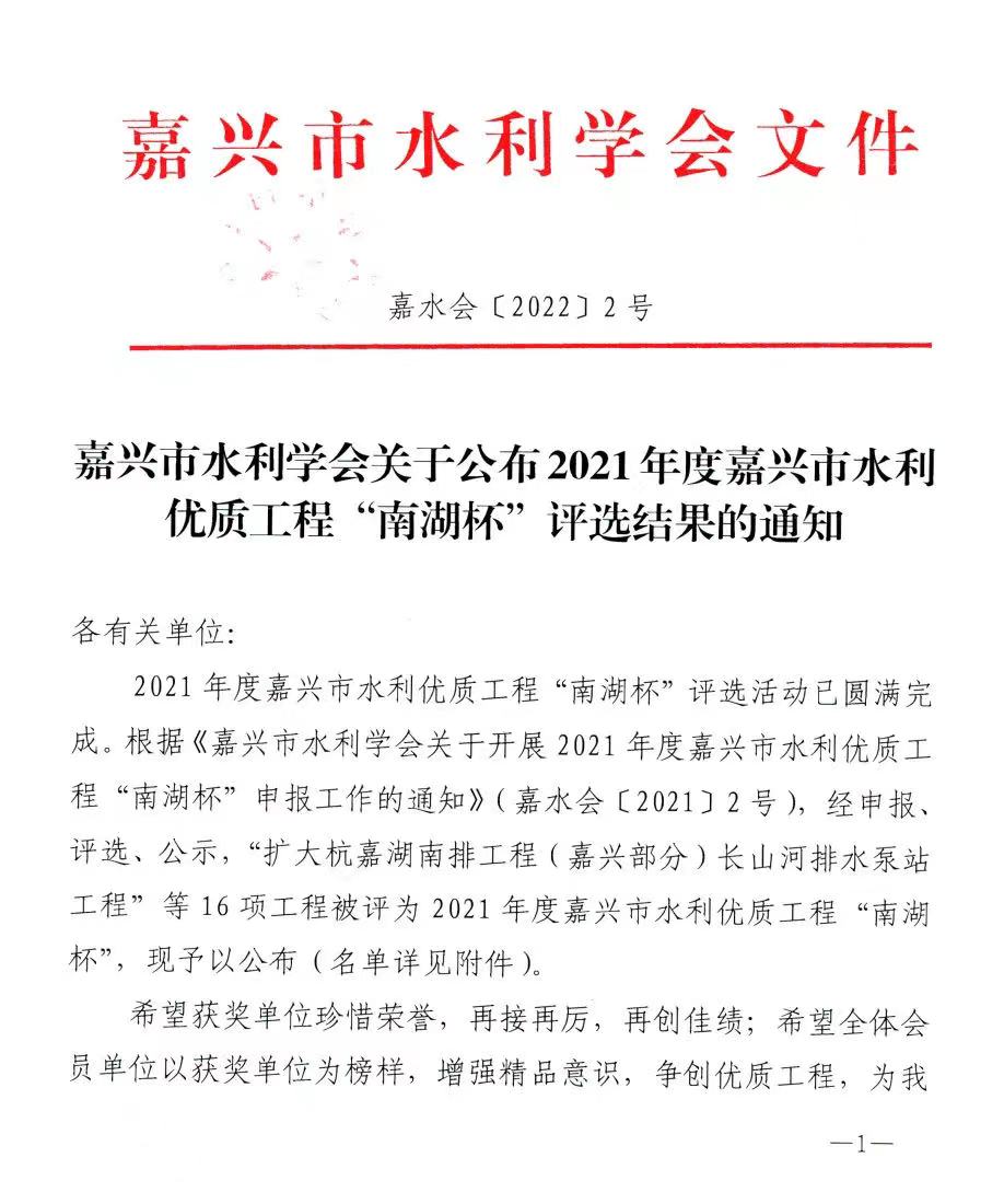 水利優(yōu)質(zhì)工程“南湖杯”是嘉興市水利建設(shè)工程的最高榮譽(yù)獎(jiǎng),設(shè)金、銀、銅三個(gè)獎(jiǎng)項(xiàng),由嘉興市水利學(xué)會(huì)聘請(qǐng)相關(guān)專家組成評(píng)審委員會(huì)進(jìn)行評(píng)審。其申報(bào)條件苛刻,認(rèn)定程序嚴(yán)格,須經(jīng)多道審核及評(píng)審環(huán)節(jié),才能最終確定獲獎(jiǎng)名單。這也意味著獲獎(jiǎng)項(xiàng)目工程建設(shè)規(guī)范、設(shè)計(jì)創(chuàng)新、施工先進(jìn)、質(zhì)量?jī)?yōu)良、運(yùn)行可靠、效益顯著,達(dá)到嘉興市先進(jìn)水平。