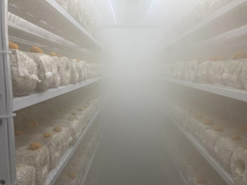 內(nèi)部設(shè)置精準(zhǔn)溫控系統(tǒng)、智能光照系統(tǒng)、霧化噴淋系統(tǒng)、新風(fēng)系統(tǒng)、遠(yuǎn)程控制系統(tǒng),實(shí)現(xiàn)菌菇的數(shù)字化、自動(dòng)化種植與運(yùn)營(yíng)。